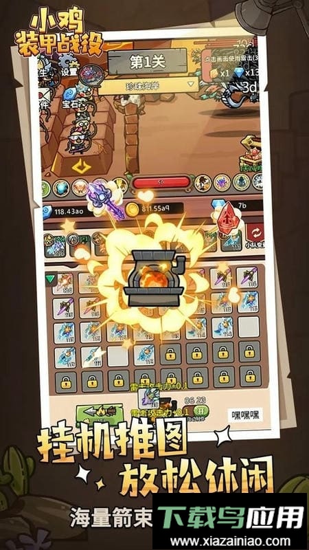 这是一款休闲放置挂机游戏,核心在于收集各式鸡仔,在千奇百怪的大陆上抵御怪物进攻,保卫家园。过程中可获得上千种箭束、宝石与神器,用以强化鸡仔;通过将鸡仔与箭束搭配培养,使其不断变强,从而在各个大陆战胜愈发强大的敌人。