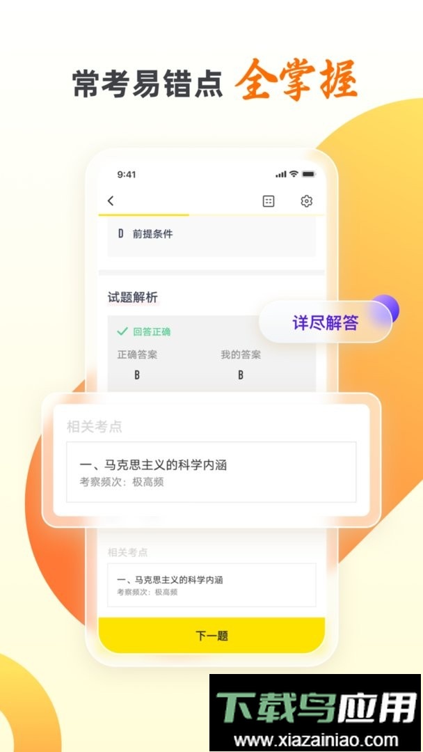 3. 完善的科学课程体系:为用户设计实用性强、结构清晰的学习课程,快速梳理考点、难点与得分点;内容涵盖自考专科、本科及成人专升本,将考试中的热点、易错点全面覆盖。