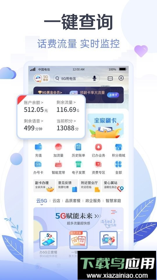 4.支持全面的账户信息查询,包括实时话费、月度账单、积分余额、套餐剩余量及已办理业务等,数据准确更新及时;