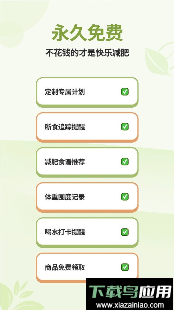 这款轻断食应用提供免费的减重知识与多样食谱,帮助用户以安全健康的方式管理体重。应用内包含丰富的健身视频与实用减脂工具,所有功能均可免费使用,让健康生活更轻松便捷。
