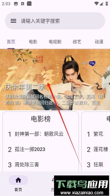 2.进入应用主页,浏览并选择想要下载的影视内容;
