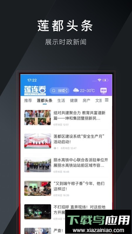 1、应用内设有推荐、学习、视听等多个资讯板块,用户可以第一时间获取莲都本地的各类新鲜资讯;