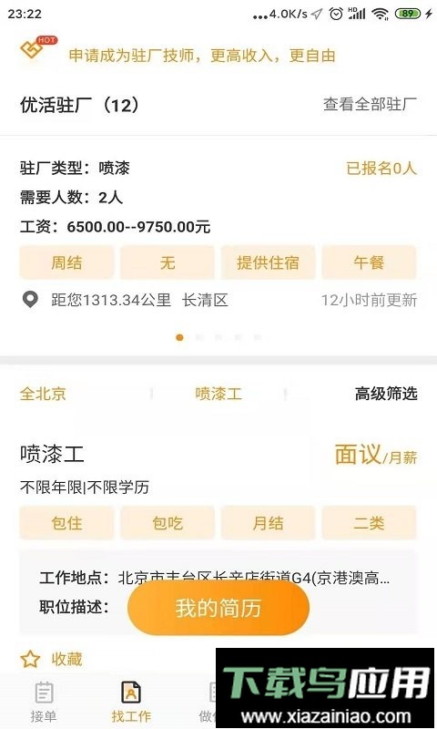 技师能够在平台发布个人资料,方便客户直接联系预约;平台汇集大量招聘信息与优质岗位,有助于找到合适的工作;系统会为用户筛选并推荐条件优越的订单;界面设计简洁,功能实用,协助技师高效赚钱;实现快速找单与一键接单,简化工作流程;依托精准定位技术,优先为技师展示附近的订单需求。