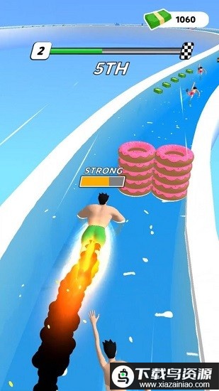 1. 拾取水面的游泳圈可瞬间加速,帮助你反超对手;