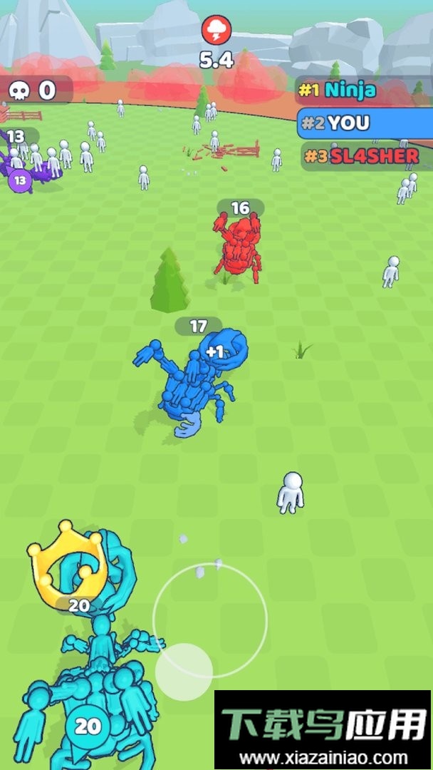 动物变形竞赛是一款轻松有趣的io竞技手游,玩家通过持续吞噬与进化来壮大自己的队伍。你需要收集场景中四处散落且未被标记的小人,逐步扩展队列规模,在竞技场中展开激烈角逐,吞噬更多对手,最终成为最强的变形动物。