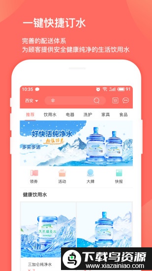 好快活商城安卓客户端是一款专注于便捷订货服务的移动应用,它以提供优质健康的桶装水配送为核心,同时汇集多种精选商品,支持一键下单与送货上门,让日常采购变得轻松高效,如果您需要这款应用,可以直接在本站下载安装。