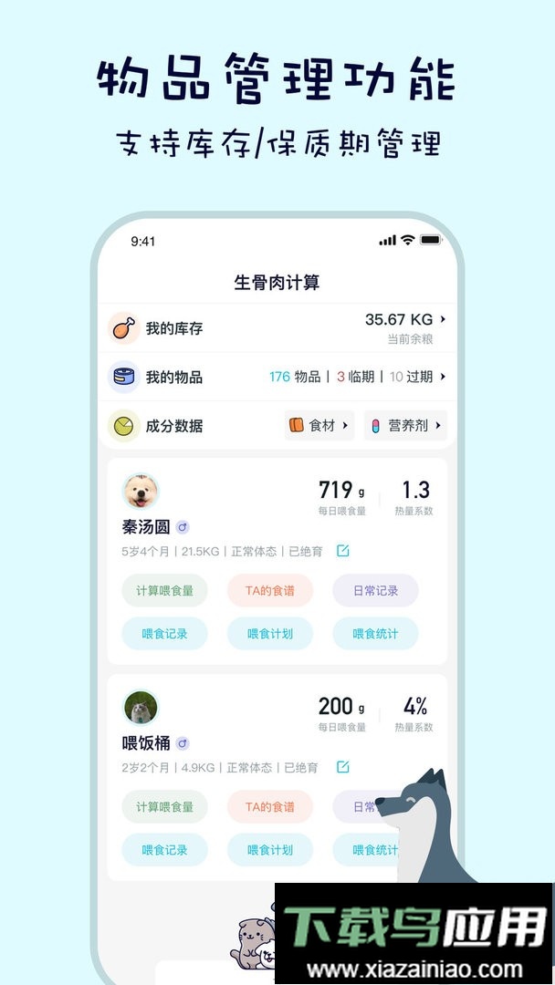 2. 随时关注宠物成长变化,智能化计算工具易于使用;
