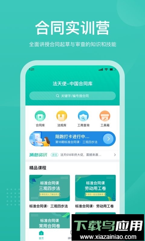 具备高效的查询功能,可精准定位法律条文文件,帮助用户及时掌握动态;支持合同自动归类,协助用户清晰管理不同合同类型,告别混乱状态;用户可通过课程快速学习法律知识,获取常见法律问题解答,随时巩固理解;平台提供大量合同模板,用户可免费下载并直接使用。