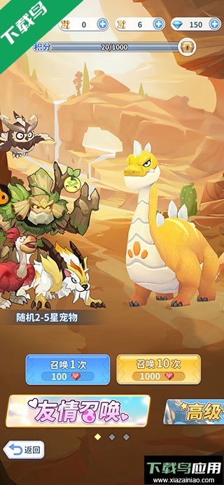 友情召唤消耗100友情值,随机获得2至5星宠物,友情值来自好友互动或冒险活动;