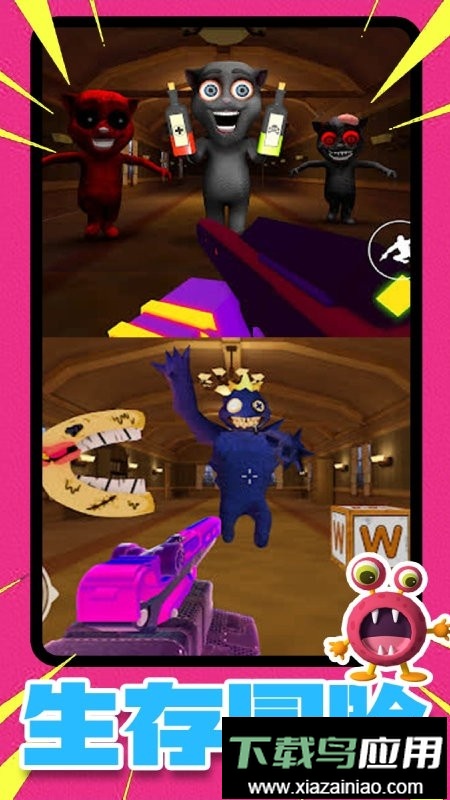 玩家置身于人类游乐场,必须避开恐怖胡安等怪物的追捕,并借助各类武器在射击战场中顽强求生。怪物乐园的地图规模颇为庞大,字母分散隐藏于各个房间之内。你的核心任务是收集指定数量的字母,并按照提示拼合成完整单词,从而换取威力更强大的装备,助力自己成功逃脱。你也可以选择扮演怪物一方,去猎捕人类;除了胡安,还有许多其他高人气怪物角色可供选择。