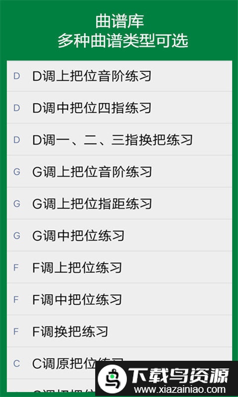 这款应用收录了多种类型的二胡曲谱,包括考级专用谱、基础训练谱、技法强化谱以及流行曲目和儿歌谱等;每一份曲谱均支持通过软件进行音准校正和节奏跟练;同时,应用也配备了日常所需的调音器和节拍器功能。