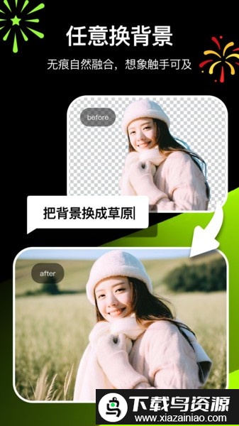 5. AI换背景:为人物或物体自由更换各种自定义的背景场景;