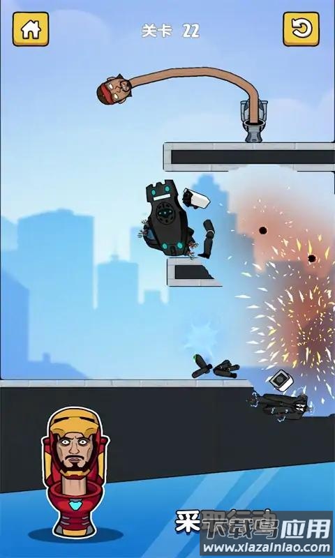游戏主角是一群造型奇特的马桶怪物,你需要操控自己的角色完成闯关任务。击败沿途遇到的所有对手即可顺利通关,海量精心设计的关卡等待你的探索。