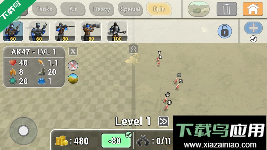 这款游戏带来独特的策略战争模拟体验,画面精细,物理效果与背景音效都十分真实,让玩家沉浸于逼真的战场氛围。游戏着重考验策略布局能力,需要在开局前精心搭配己方阵容,并预判对手部署,从而组建最合理的部队以赢得最终胜利。喜欢这类游戏的玩家不妨立即下载尝试。