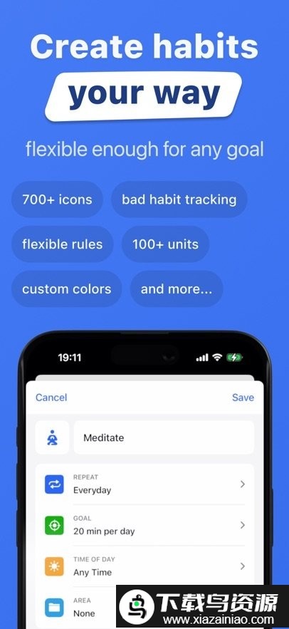 3. 个性化习惯计划:为健身、学习、自我关怀、工作效率等不同生活领域创建专属习惯组合。