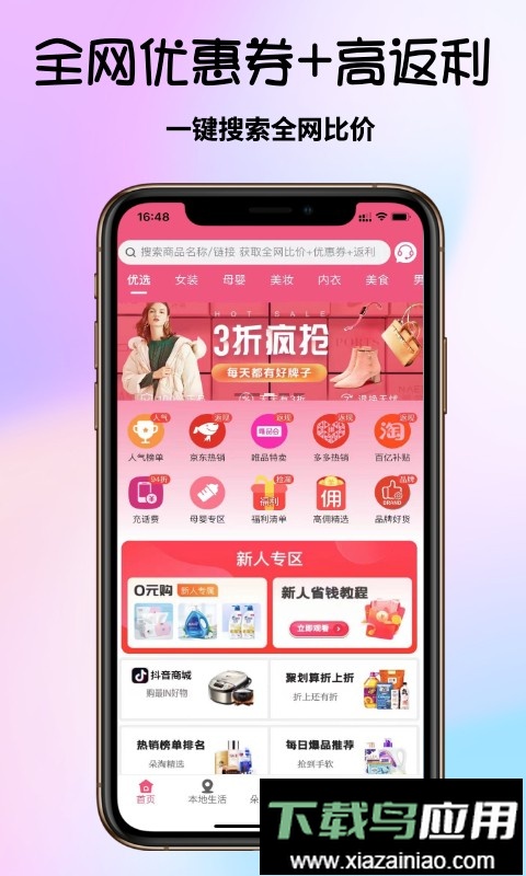 2、涵盖各类热门好物,并配有多重商品优惠券,避免用户多花冤枉钱;