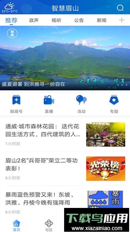 智慧眉山客户端是为眉山市民设计的区域性便捷服务应用,集中呈现本地各类新闻信息,方便用户随时掌握身边事,同时提供多元化的生活服务功能,提升日常办事效率。