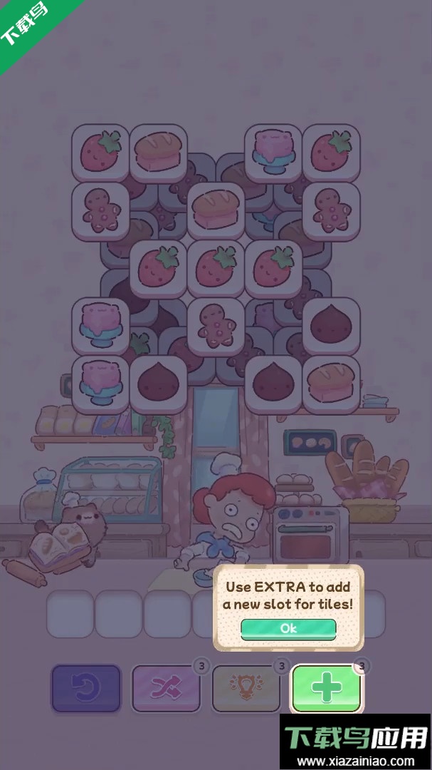 核心玩法是通过三消来组合面粉、酵母等食材方块,制作出法棍与可颂等面包;猫咪伙伴为“面包师猫咪”,其技能是优先消除面粉类方块,提升制作效率。