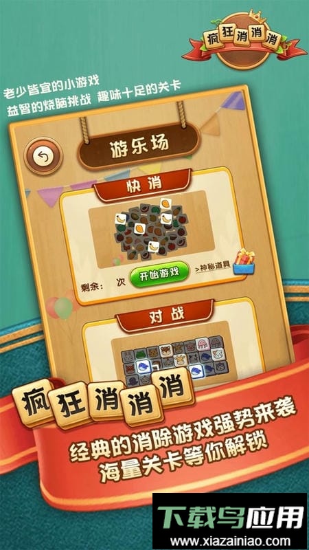 这是一款轻松休闲的三消手游,玩法与羊了个羊类似,玩家需要在层层叠叠的图块中,找到并收集三个相同图案进行消除。游戏提供了丰富的关卡和简单的闯关挑战,旨在为玩家带来趣味十足的消除体验。