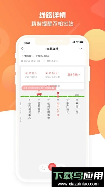 这款应用是上饶市民低碳出行的首选工具,作为精准的实时公交查询助手,其动态GPS数据直接获得上饶公交集团授权,信息准确率极高,帮助用户实现掐点乘公交,告别盲目等待。