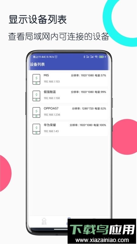 可查看同一局域网内所有可连接的设备列表;