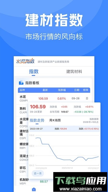 水泥指数实时行情app专为水泥及相关行业从业者设计,提供全面的市场信息与数据服务。该应用实时更新水泥行业动态与行情走势图,帮助用户及时掌握市场变化,支持决策与投资分析。