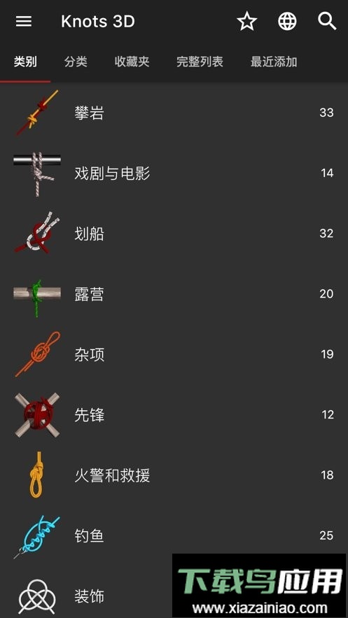 knots 3d是一款通过三维立体模型来展示各类绳结的实用工具软件。该应用收录了丰富多样的绳结类型,详细说明其适用场景,并提供具体的打结步骤与三维动态演示,对于户外活动、专业工作及日常生活均有很高的参考价值。