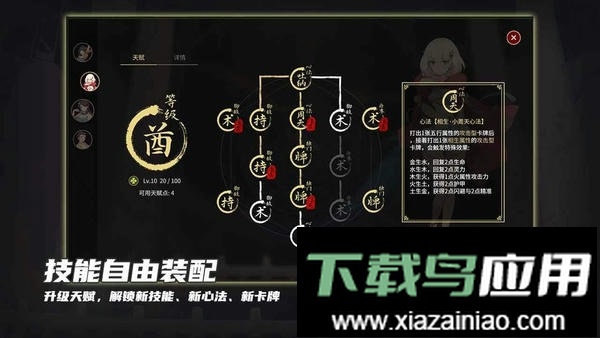 3.这是一款充满东方元素的卡牌冒险游戏,卡组构建自由度极高,没有固定职业束缚;