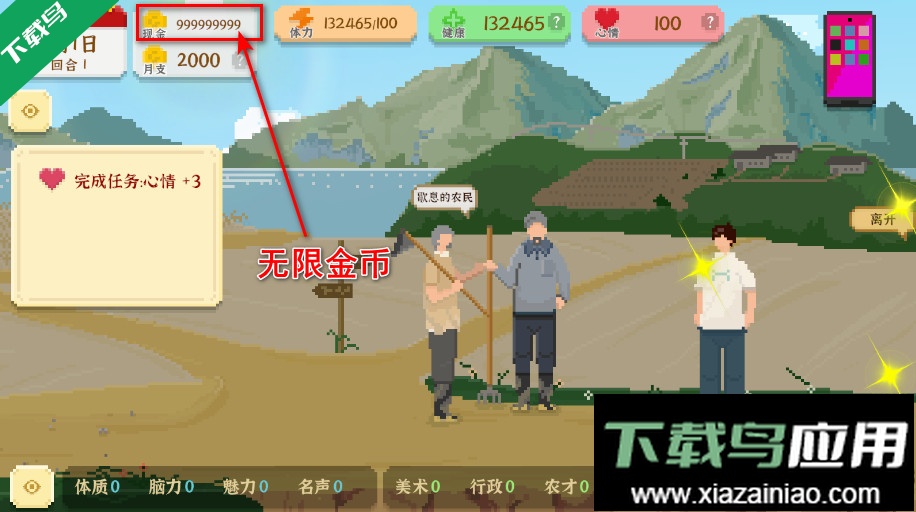 魅力属性:高效途径包括接取工地搬砖大叔任务,接取即加10点魅力,完成再加20点;在网吧与三好学生或游戏大神互动,消耗5点体力换取10点魅力;政务中心路人同样可用5体力换10魅力,偶遇“富哥”还能额外获得100金钱;医院取药男机制与工地大叔类似;长期来看,与艾薇等女性角色恋爱,好感度超过70后可能触发母亲提供1万元启动资金等隐藏奖励。