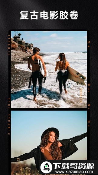 1. 多样特效:支持图片镜面投影、胶片漏光、双重曝光、双镜头变焦等效果;同时提供黑白胶片、闪烁星光、经典半格边框、广角视觉、vhs风格、颗粒质感、lomo色调、划痕纹理、蒸汽波风格以及1888或1998年代感滤镜。