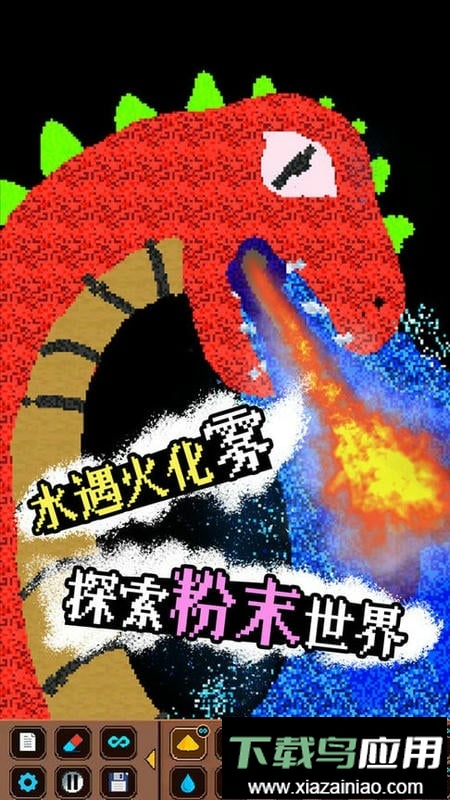 这是一款画面简约的物理模拟休闲游戏,集合了多种粉末物质。玩家可以运用石头、木炭、岩浆、水、硫磺、火药、种子、玻璃等不同材料模拟各类场景;当物质相互混合时,可能触发意想不到的反应,例如观察种子逐渐发芽,或是重现火山喷发的壮观景象。