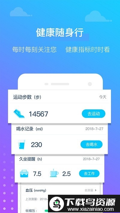 健康数据实时同步;健康档案长期保存;健康任务每日提醒;健康体检预约便捷;健康运动轨迹记录;健康商城提供相关产品。