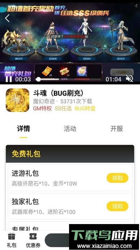 2、提供超多游戏礼包,所有礼包均免费领取;