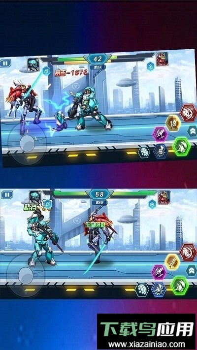 4、游戏中设有丰富的闯关任务,操控巨型机甲战士击败所有对手吧。