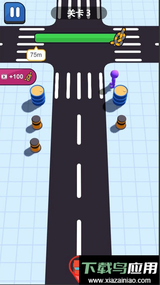 我的绳子一百米是一款以绳索解谜为核心的休闲闯关手游。游戏内含丰富关卡,玩家需巧妙将绳索固定在场景柱子上,通过合理布局形成拦截网,阻止车辆前进并保护行人安全。操作简单却极具策略性,适合各类玩家体验。