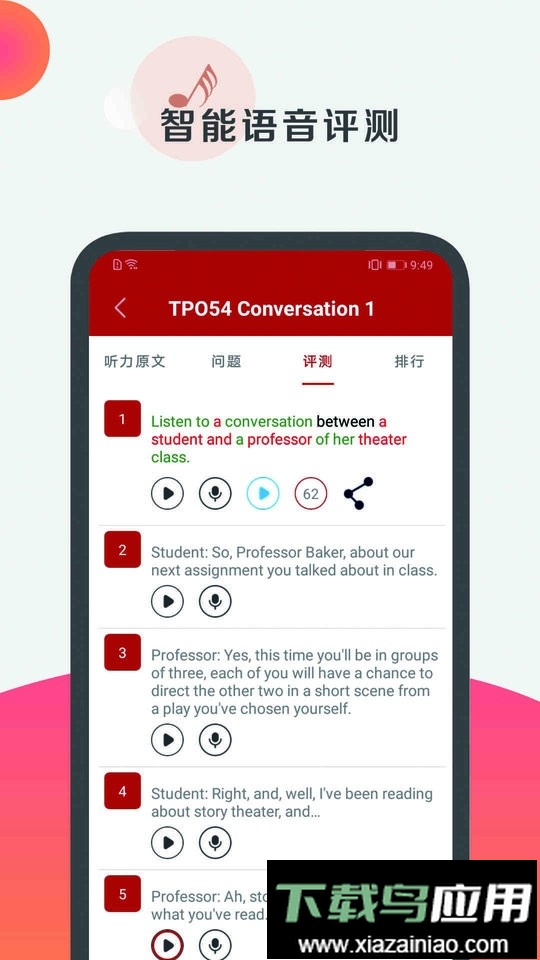 1、增加口语句子评测功能,帮助用户逐步改善发音与流利度;