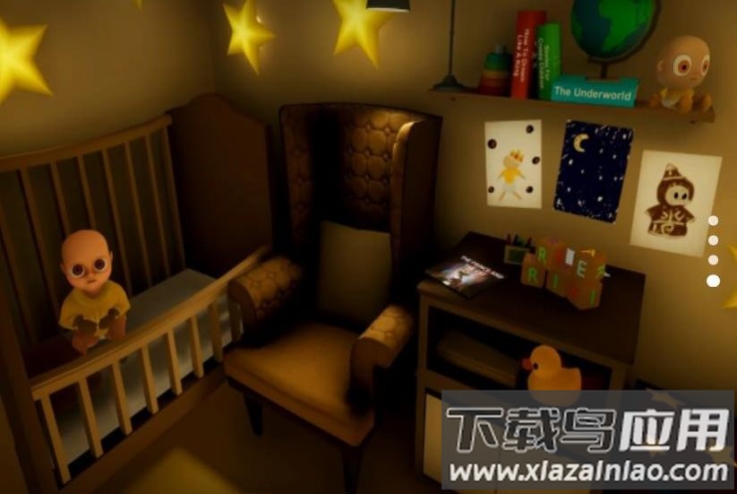 昏暗房间中弥漫着紧张气息,你需要保持冷静,仔细搜寻每一处角落,找出隐藏的线索与工具。同时必须时刻留意周围的动静,一个穿着黄色衣服的婴儿正在四处游荡,一旦被发现便会面临危险。只有依靠智慧与胆量,才能成功找到离开的方法。