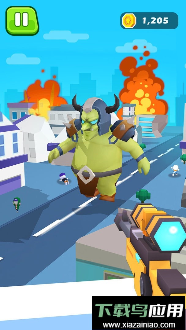 4. 长按屏幕能开启瞄准镜,子弹仅对房屋或怪兽生效,不会误伤人类。