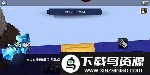 4、走到地形边缘时,点击右侧搭桥按钮铺设道路继续前进。