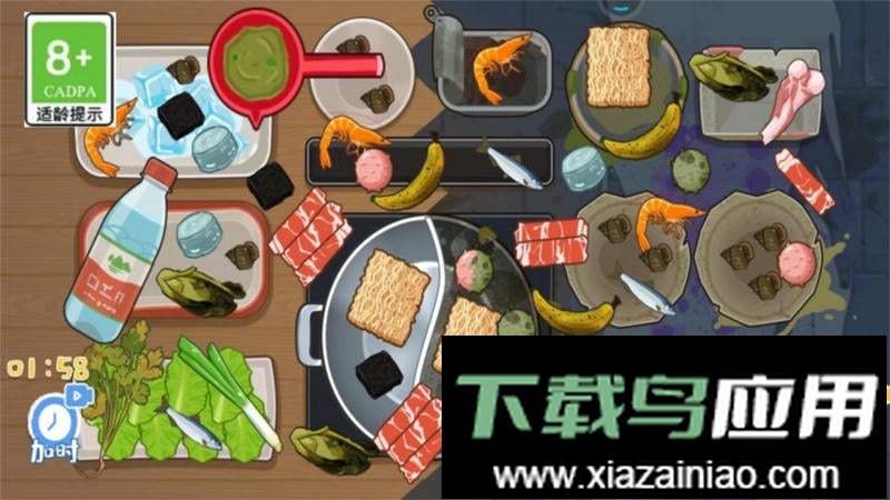 1、进入游戏后,你会看到场景中有蔬菜、盘子和刀具等物品。