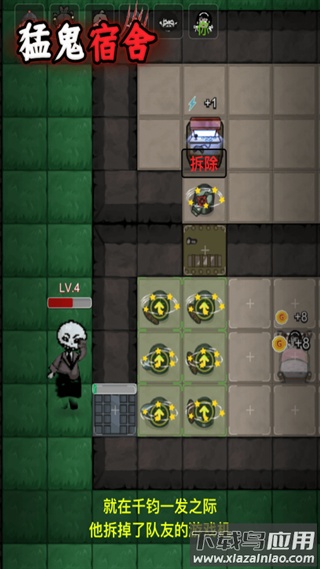 在游戏里,你将扮演一名学生,目标是快速找到空宿舍锁好门,然后躺在床上积累资源。听起来简单,但挑战随之而来。你需要用赚取的金币升级宿舍门的耐久度,布置各种炮台和装置,同时提升床铺等级以获得更多收入,从而应对越来越凶猛的鬼魂进攻。随着关卡推进,猛鬼会变得更加强大,迫使你投入更多资源升级炮塔和购买高级道具,如能量护盾、游戏机、取款机等,这些装备都有等级设定,等级越高,威力越显著。