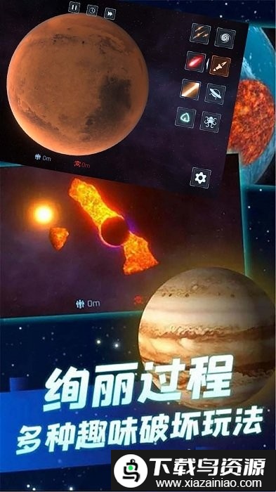 2、体验升级星球的完整流程,感受更具冲击力的爆炸效果,逐步实施你的毁灭计划。
