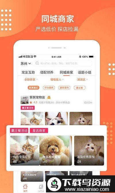 1. 专业服务者与优质商家提供多样化的养宠服务,供用户挑选。