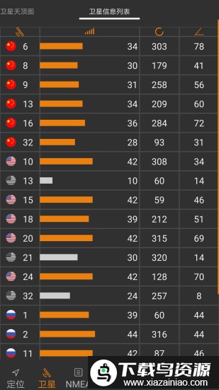 1.实时展示卫星信号接收状态,兼容北斗、GPS、GLONASS、伽利略等主流卫星导航系统;