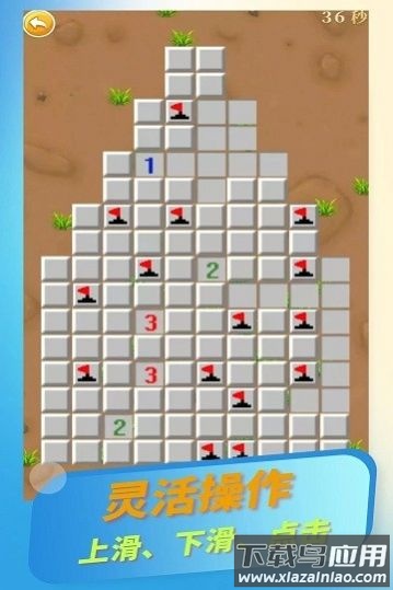 1、玩家点击格子即可显示隐藏的数字或地雷,也能插旗标注可疑雷区。