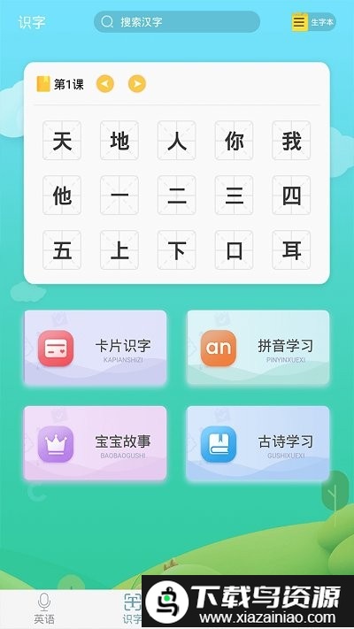 该少儿英语启蒙应用收录了5至12岁学龄儿童需掌握的大部分英语词汇,其中包含超过九成的小学阶段常用单词;通过点读式单词卡片的学习方式,有效增强了孩子对英语的初步认知与记忆。