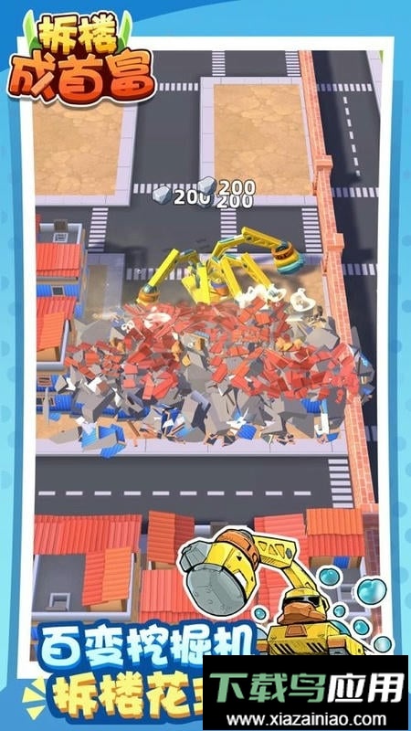 拆楼成首富是一款建造模拟题材的手机游戏,融合了拆迁、施工与建造等多种元素,为玩家提供真实的施工建造模拟体验。你将驾驶各类专业工程车辆,使用丰富工具,开启一段从零开始的建造生涯。