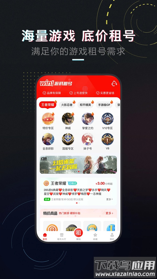 1、【特价专区】精品游戏账号最低0.5元起租,花费不到一元就能体验高手拥有的稀有账号。