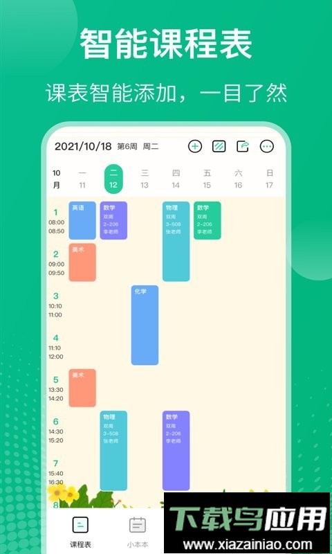 3. 色彩主题:为不同课程搭配专属颜色,区分清晰;同时提供精美背景,让查看课表成为一件愉悦的事。