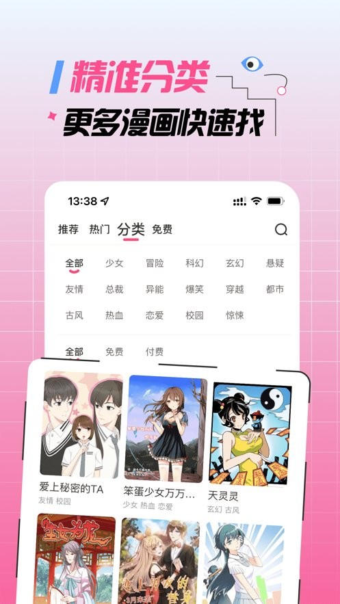 3、具备详细分类标签,方便根据兴趣快速查找漫画。